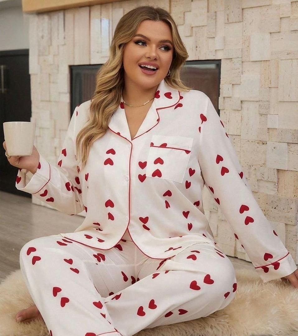 Stay comfy and cute with this breathable pajama set, featuring a sleeved top and red heart prints for a playful touch.
